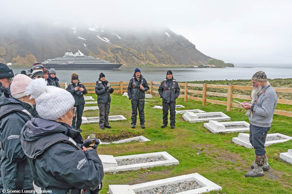 The Falkland Islands are a paradise for penguin lovers, home to gentoo, king, Magellanic, and rockhopper penguins. Rare birds like the flightless steamer duck can also be seen. A visit to the capital Stanley (weather permitting) reveals British charm, cozy pubs, and a cathedral with a whale bone arch. Discovery Team experts share fascinating insights about the wildlife. In the evening: Sushi* @ Koko’s, theater shows, and drinks at the Scenic Lounge Bar.