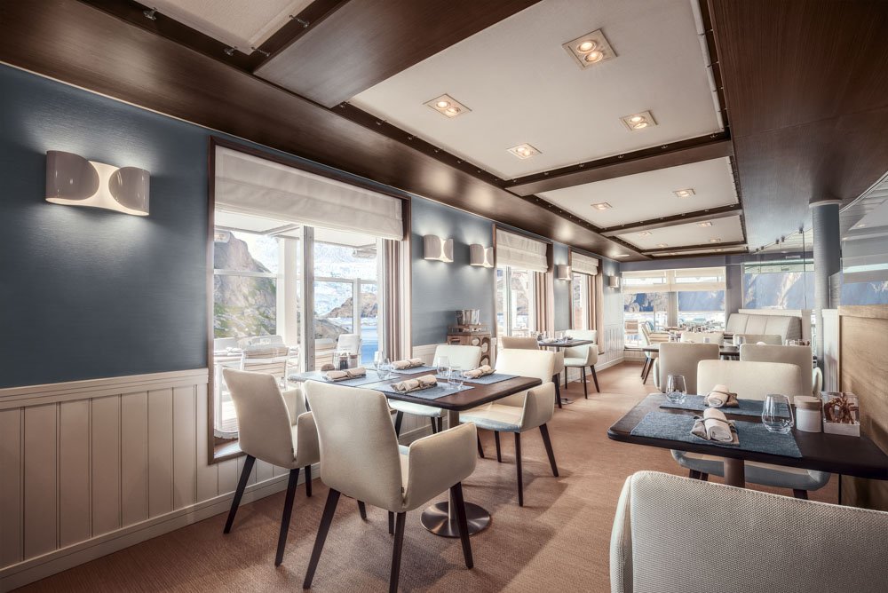 With an Antarctic cruise booking aboard HANSEATIC inspiration, you’ll enjoy full board across three restaurants, a complimentary minibar, and 24-hour room service.