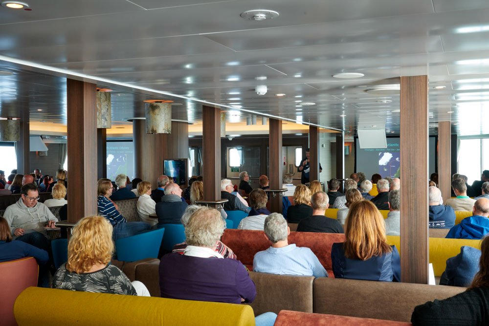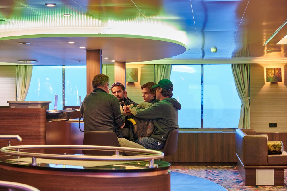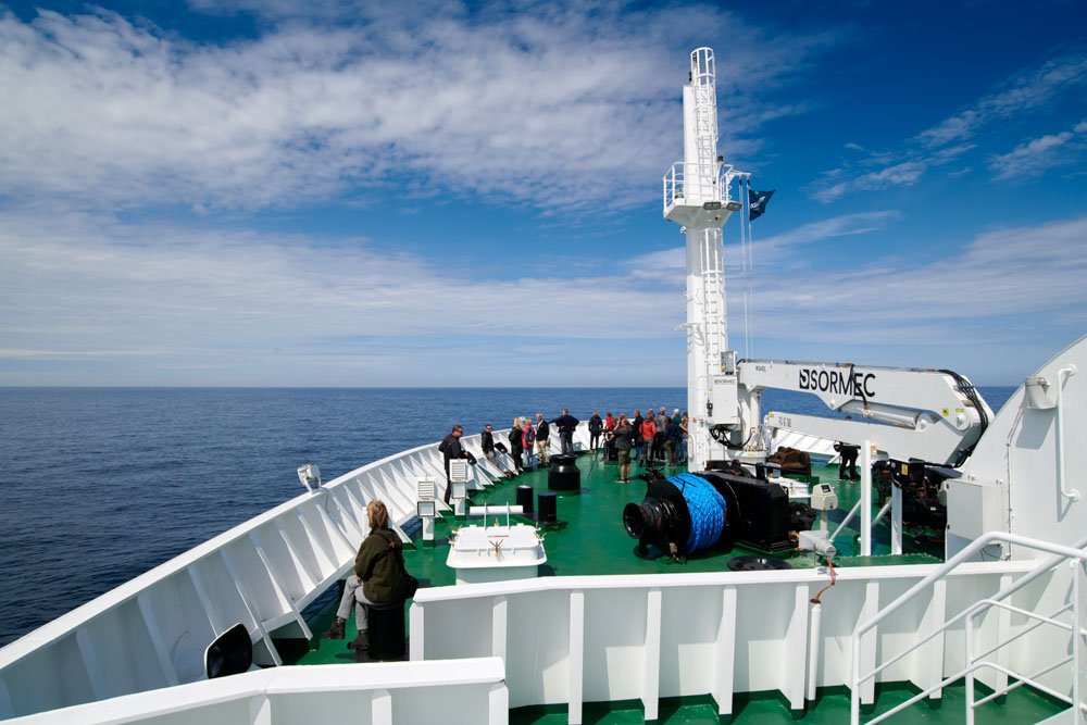 Layering is key: it is warm inside the ship, but outdoor conditions can be cold and windy. Keep your parka within reach — you never know when someone will call out “Whales spotted!”