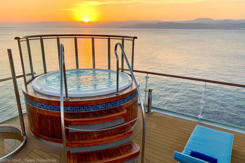 - It also boasts one of the best expedition team-to-guest ratios of 1 to 6, two outdoor whirlpools, and private balconies in 95% of its generously sized cabins.