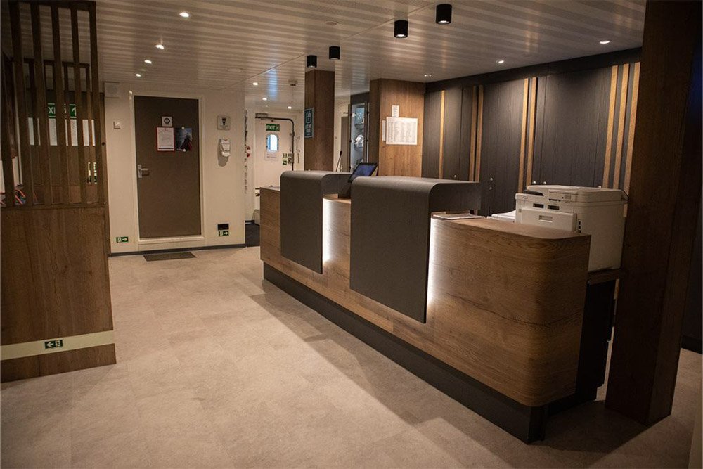 - The ship has been fully modernized for expedition cruising. Its rugged exterior contrasts with a modern interior that offers the comfort of a three-star hotel.