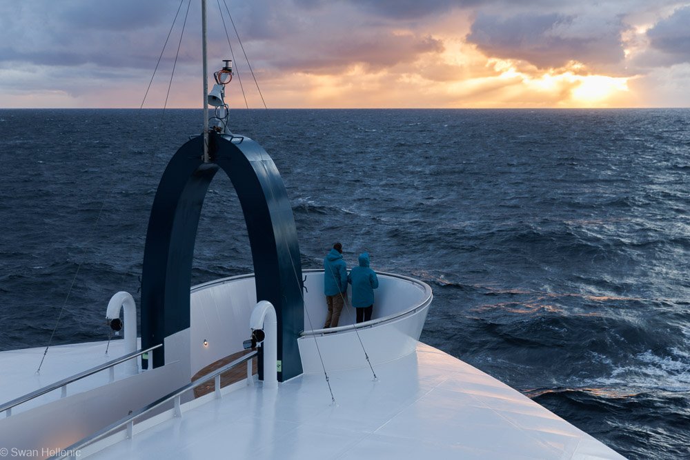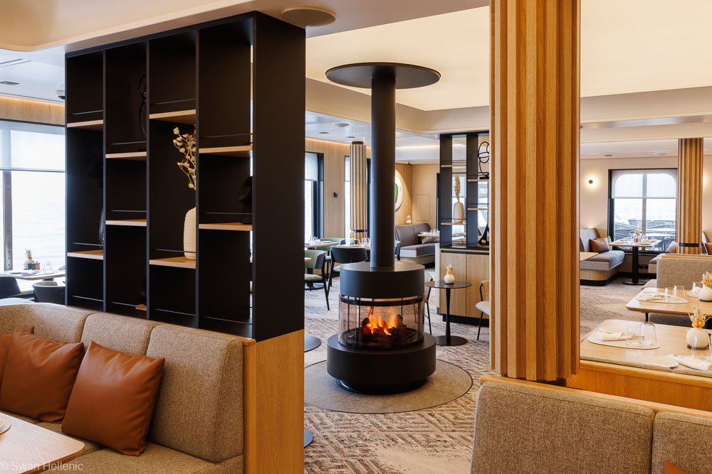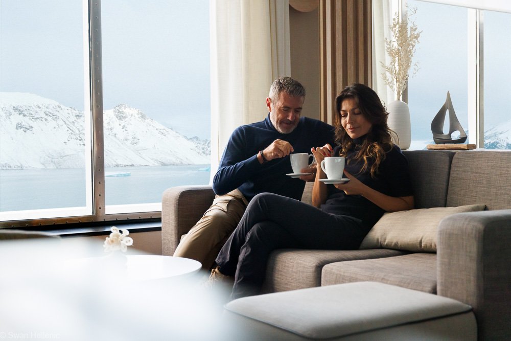 You travel with the comfort of a small boutique hotel, staying in cabins starting from 20 m², paired with 24-hour room service. From the observation lounge, you can enjoy panoramic views of ever-changing polar landscapes from warm, cosy seating areas. Exceptional dining is part of the onboard experience across two restaurants. After shore landings you may unwind in the Jacuzzi, enjoy a massage in the spa, relax in the sauna or take a swim in the heated outdoor pool at the stern — all while watching icebergs drift by.