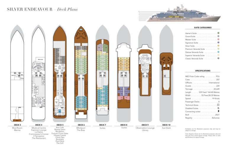 Silver Endeavour is purpose-built for polar exploration, engineered with the advanced PC6 ice class to navigate the demanding conditions of the Arctic and Antarctica. Launched in 2022 by Meyer Werft in Papenburg at a construction cost of approximately USD 310 million, this 164-meter vessel welcomes just 200 guests—offering an intimate and exclusive travel experience in some of the most remote destinations on Earth.
