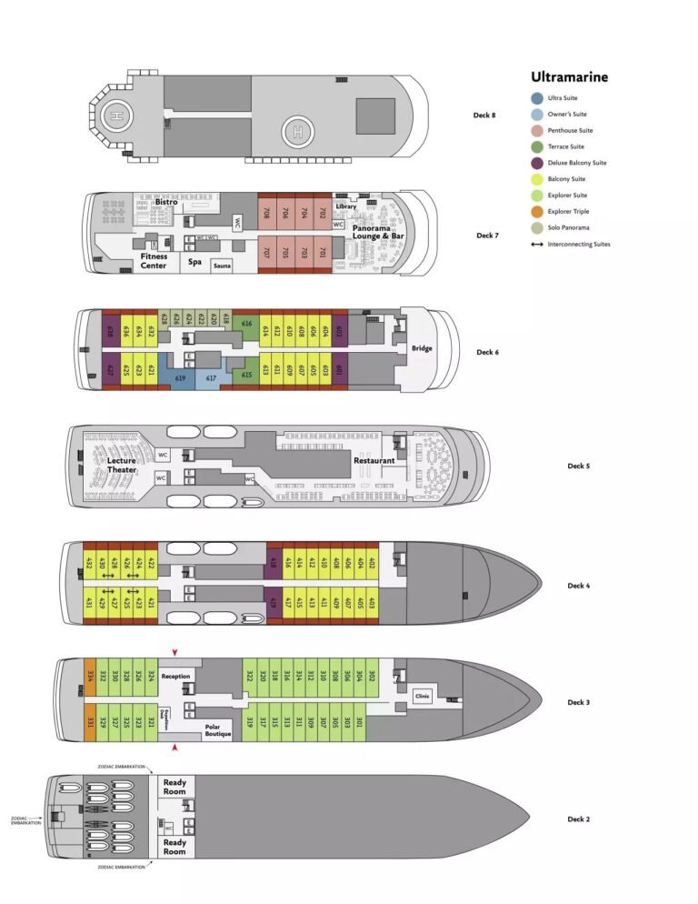 - Can be booked with all three beds or individually with another passenger of the same gender assigned by Ultramarine.