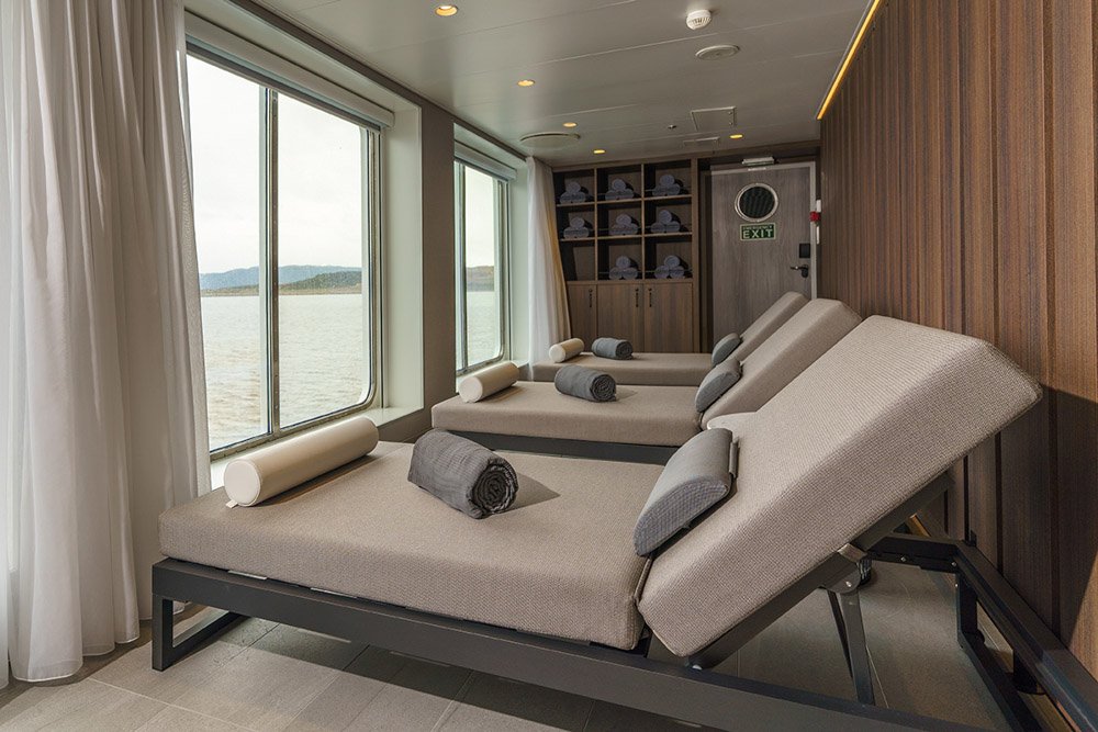 You can unwind in the sauna overlooking the sea, dine in one of the two onboard restaurants, or enjoy the view from the Observation Lounge with a glass of wine in hand.