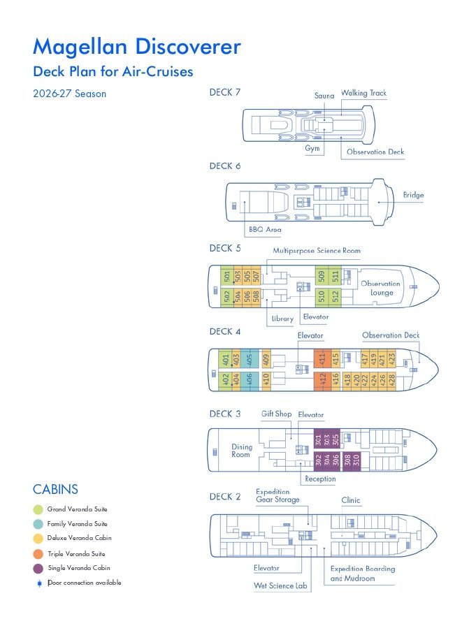 - The Magellan Discoverer is a purpose-built expedition vessel designed for Air Cruises, carrying a maximum of 76 passengers.