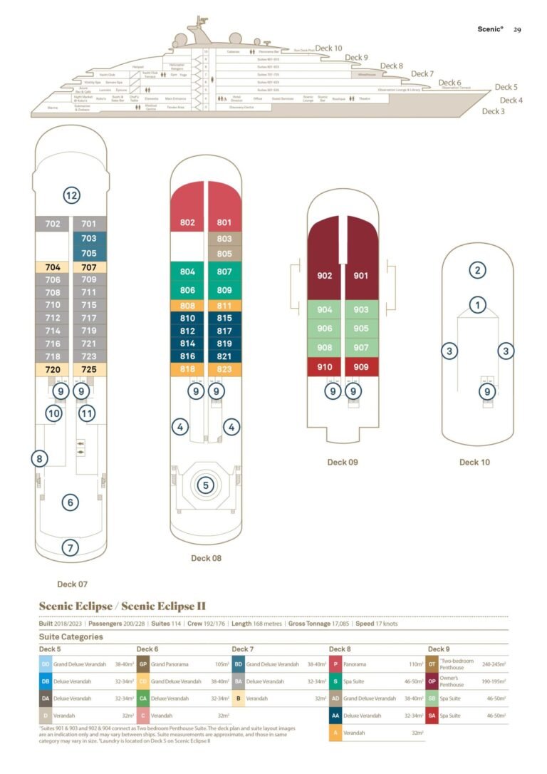 - 32 m² Verandah Suite on Decks 5 to 8.